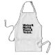 Cute, heavy duty apron with wide front pocket. Light to wear and easy slip on and off. Shorter length perfect for my 5 ft frame. I love it! Wording and print looks good with clear borders. Stitching is good, nicely finished.