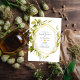 Hops and barley beer tasting couples shower invitation with gold geometric frame designed to be quickly and easily customised to your event specifics.