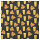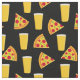 Black fabric patterned with pints of beer and slices of pepperoni pizza