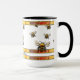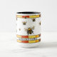 Bees in flight with honeycomb stripes at the top and at the bottom of this customisable coffee mug. Great as a gift for beekeepers and nature lovers, Add the name and the beverage on this cute bee styled mug.