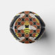 This cute pattern features a graphic motif of busy bees in black and yellow set against a stylised honeycomb design in warm orange and brown hues.