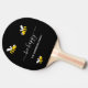 Decorated with happy, smiling yellow and black bumblebees. A chic black background. White hand lettered script and the text: Bee Happy. Personalise and add a name.