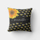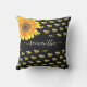 Decorated with happy, smiling yellow and black bumble bees and a large watercolored sunflower. A chic black background. Personalise and add a name. The name is written with a modern hand lettered stylie script with swashes. To keep the swashes only delete the sample name, leave the spaces or emoji's in front and after the name.