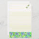 A pretty yellow lined stationery paper decorated with a border of periwinkle blue flowers and bees painted with watercolor. Great for letters, lists, journalling and more. Also, a nice gift for a beekeeper!