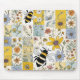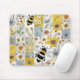 Bees Floral Patchwork in Blues and Yellows Mouse Pad