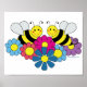 2 cute bumble bees with flowers. Surrounding these two big bumble bees are flowers in pink, purple, blue and yellow. Fully customisable and you can even personalise them. This colourful bee design is great for summer and bee lovers.