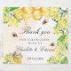 For a summer wedding. Cute bumble bees, yellow florals, and dripping honey from a honeycomb. Personalise and add your names and a date. With the text: Thank you for celebrating with us.