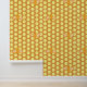 Scattering of Bees on honeycomb pattern in apricot yellow tones