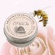 These 1.5" beewax lip balm labels fit top of a 0.5 oz screw lid metal tin. Central design features a vintage skep hive illustration with wildflowers and little bees scattered around the label. Personalise with your apiary name, address and product description (i.e., mango.) Also include your product weight. Happy Beekeeping!