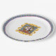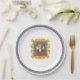 Celebrate Beethoven! From an original artwork series by ZoeSPEAK of classical music collectors plates, these Paper Plates feature a portrait of the composer Ludwig van Beethoven. The portrait is a hand tinted etching, surrounded by an illustration of an ornate oval golden frame. The frame is on a wallpaper background of yellow suns and uplifting winged spirits against a medium blue. Under the portrait, in red, is the composer's name. The wallpaper is surrounded by more gold ribbons, in the centre of the plate against a white background. There is a medium blue band with winged spirits and a red border around the edge of the plate.