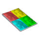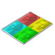 Beethoven portrait in red, yellow, blue and green squares. Image with carved effect applied to design.