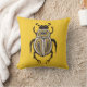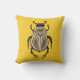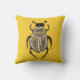 Abstract beetle pillow with an ink illustration depicting a cartoon abstract beetle with decorative elements in white, gold and black over intense yellow background.