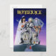 The classic theatrical poster art for Beetlejuice, featuring him sitting atop a house with Barbara and Adam Maitland as the Deetz family approach the house.