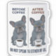 A grumpy Frenchie before coffee and a slightly improved Frenchie after. This playful design captures the morning mood every dog owner and coffee lover understands.
