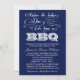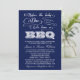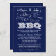 "Before The Baby's Due, Let's Have A BBQ!" Navy Blue Typography Baby Shower Invitations.