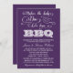 "Before The Baby's Due, Let's Have A BBQ!" Purple Typography Baby Shower Invitations.