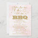 "Before They Say I Do, Lets Have A BBQ!" Blush Pink & Gold Typography Wedding Rehearsal Dinner Invitations