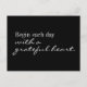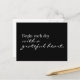 Begin each day with a grateful heart. This is such a great reminder for friends, family, co-workers and ourselves. Black postcard features whimsical and kind crisp white typography that is a mix of calligraphy script and printed typography.