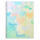 Hearts in colourful, pastel shades of blues, pinks, purples, yellows floating on an abstract watercolor background of pale green, yellow, purple and blue. This notebook would be great for a diary, gratitude journal or for school. You can change the quote or delete it by using the "personalise" button. The design is a reminder that when love and gratitude flows, our heart glows. You deserve a life of love!