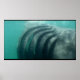 behind a shark poster