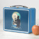 This is a standard metal lunchbox that appears to work just fine. We designed this box ourselves with an uploaded photo and custom text on the front and back. It looks absolutely beautiful except the front of the lunchbox is not centered like it shows in the photo. The print borders don't align with the inset flat part of the box where the preview photo online showed it perfectly centered in there. The back looks nice and centered though.