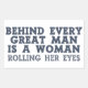 “Behind Every Great Man Is a Woman Rolling Her Eyes”. Using the “customise it” function, you can change (edit) the background colour of this item and add your own text if you wish. See my store for more items with this design.