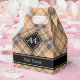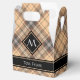 Beige and brown tartan design. Seamless pattern. Custom text and monogram.
