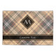 Beige and brown tartan design. Seamless pattern. Custom text and monogram.