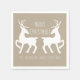 This personalizable paper napkin design features Destei's illustration of two white deer silhouettes facing each other. In between the deers it reads "Merry Christmas!". There is also a personalizable text area under the deers. The background colour is beige, but it can be changed to any other colour as well.