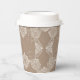 Beige and white patterns is a beautiful AI art design that shows white lace patterns on a beige background. They are the perfect paper cups to impress your guests.