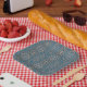 Square Paper Plates printed with Beige Blue And Grey Alternating Pattern Design artwork design illustration by TheFabricSeal at Zazzle #ZazzleMade https://www.zazzle.com/store/thefabricseal