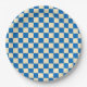 Beige + Blue Check Chequered Chequerboard Pattern Paper Plate