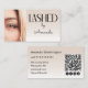Beige Blush Lashed Photo QR Code Social Icons Business Card, upscale elegant minimalist design. Customize with your details and your special photo. Contact designer for any customization questions.