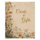 Guide your guests with style using our elegant Wedding Card and Gift Sign, featuring a beautiful bohemian design with whimsical wildflowers, leaves, and botanical greenery. The rustic watercolor pattern showcases a warm palette of beige, burnt orange, terracotta, and green, perfectly capturing a vintage-chic aesthetic. Ideal for spring, summer, or fall weddings, this stylish sign adds a touch of farmhouse charm to your gift table while seamlessly blending with your boho-themed celebration. The delicate floral border and elegant typography create a sophisticated display your guests will admire.