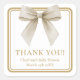 A charming beige bow thank-you label designed to elevate your baby shower favors with elegance and warmth. Perfect for sealing gift bags, boxes, mini candles, and party treats, this personalized square sticker features a soft neutral bow framed with classic borders—ideal for modern, timeless, or gender-neutral celebrations. Customize with your event name and date for a beautifully coordinated finishing touch.