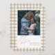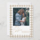 Celebrate the holiday season with our Beige Buffalo Plaid with Photo Christmas Card, perfect for sharing warm wishes with family and friends. This charming card showcases your favourite photo, framed by a cosy beige buffalo plaid pattern that blends rustic charm with modern elegance. The minimalist design and soft, neutral colour palette create a timeless and inviting look, while personalised details allow you to add a heartfelt holiday message. Make your Christmas greetings unforgettable with this beautifully crafted card, combining classic style and personal warmth.