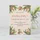 For a Christmas party with family and friends. Beige faux burlap background. Pine tree branches and red berries, a gingerbread man and a cute owl with a scarf an beanie delivering the mail. Personalise and add the details.