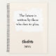 A beige, cream coloured background, with a white brush stroke. Inspiratiional, motivational Quote: The future is written by those who dare to plan. Personalise and add your name and a year. Grey text.