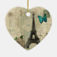 beige Damask butterfly rose Paris Eiffel Tower Ceramic Ornament