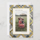 Capture the warmth of the season with our exquisite Christmas photo card. Embracing the timeless elegance of beige and dark green tartan adorned with delicate gold accents, this card presents your cherished family photo on a soothing beige backdrop. Radiating togetherness, our minimalist 'Merry Christmas' wishes, coupled with your family name, offer a personalised touch. Share joy effortlessly this season.