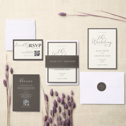 Beige Elegant Classic Script Vintage Wedding Invitation