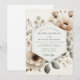 Experience a timeless romance with this elegant design. A delicate composition of painterly anemones and roses unfolds in a soft, muted palette. Hues of dusty beige, soft taupe, and muted sage green create an ethereal and sophisticated atmosphere for your special day.