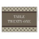 Trendy and chic Fancy Lattice Table Number Card featuring a stylish circle and diamond studded pattern over a vibrant tidal foam beige background with a broad two-toned brown border. This elegant table card is perfect for a modern wedding. Easy to customise, simply add the appropriate table number(s) in the text field provided. Click "Customise It" to find more personalisation options.