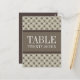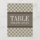 Trendy and chic Fancy Lattice Table Number Postcard featuring a stylish circle and diamond studded pattern over a vibrant tidal foam beige background with a broad two-toned brown border. This elegant table card is perfect for a modern wedding. Easy to customise, simply add the appropriate table number(s) in the text field provided. Click "Customise It" to find more personalisation options.