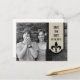 Modern and simple Fleur De Lis Banner Save the Date Postcard in tidal foam beige featuring a scallop edge banner adorned with a chic damask flourish. This stylish save the date postcard is perfect for announcing your elegant wedding. Easy to customise, simply add a cute couple photo and your wedding details in the text fields provided. Click "Customise It" to find more personalisation options.