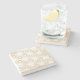 The coasters are gorgeous, a quality feel and heavy weight. They look like a precious archeological find. A rustic stone juxtaposed with a modern floral black and white print. I like the way the print goes slightly imperfect on the cut stone edges giving them a kind-of natural beauty.