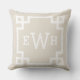 Stylish and modern square accent pillow design features a Greek key geometric border frame design and monogram that can be personalised. Soft and neutral beige and white colours. Background colour can be modified.