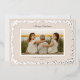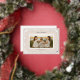 Send winter holiday greetings to family and friends with this real metallic foil Christmas card that features classic traditional style typography and personalized text, your custom horizontal landscape orientation photo, plus room for a longer message on the back. The warm beige background is an elevated and on-trend choice when paired with silver foil. The festive yet classic border motif of evergreen and holly branches gives an air of timeless holiday cheer to the design.