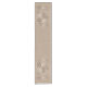 Beautiful table runner in muted shades of beige and brown with symbols of different religions and a labyrinth in the background. Suitable to use as an interfaith altar covering.