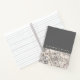 An elegant monogrammed notebook shown with a simple monogram in stylish typography, this sophisticated custom notebook is designed with custom text and a tiled image.